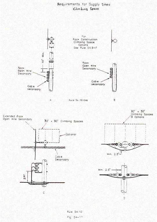 conductor levels in accordance with climbing space requirements in Rules 54.7,