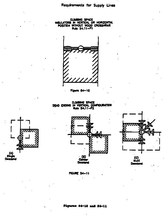 (2) Dimensions Where Conductors Are Dead-ended In vertical Configuration: Climbing space through conductors shall be a square of the horizontal dimensions tabulated below, and shall be located either on one side or a quadrant of the pole (See Figure 54-11).