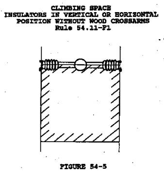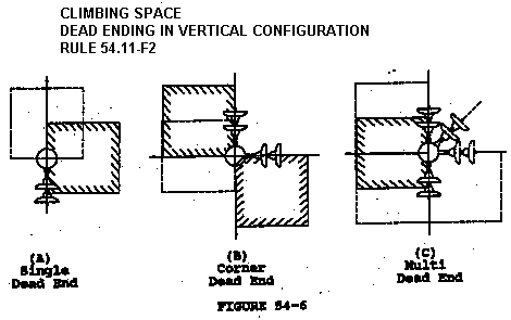 (2) Dimensions Where Conductors Are Dead-ended In vertical Configuration: Climbing space through conductors shall be a square of the horizontal dimensions tabulated below, and shall be located either on one side or a quadrant of the pole (See Figure 54-6.).